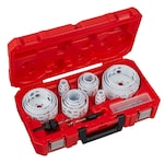 Made in the USA, the Milwaukee Hole Dozer Hole Saw features Rip Guard, the strongest tooth form in the industry, backed by the Rip Guard Limited Lifetime Tooth Break Warranty. Each tooth is built with more steel behind the cutting edge for added strength. The Rip Guard warranty on tooth breaks is a first for the hole saw industry. The added tooth strength along with 8% cobalt give added life to the teeth, allowing for increased productivity on the jobsite, as well as continued hole quality. The Hole Dozer includes Plug Jack, an all access slot design that allows for full access during plug removal. The Plug Jack gives access lower into the cup for thick material and higher towards the teeth for thin material. With multiple positions to apply leverage and better plug access, Plug Jack increases productivity and eliminates wasted downtime between holes. For fast, tool-free change-outs, use Milwaukee's universal Quick-Change Arbors. 49-56-7210, 49-56-7240, 49-56-7250, and 49-56-9100.