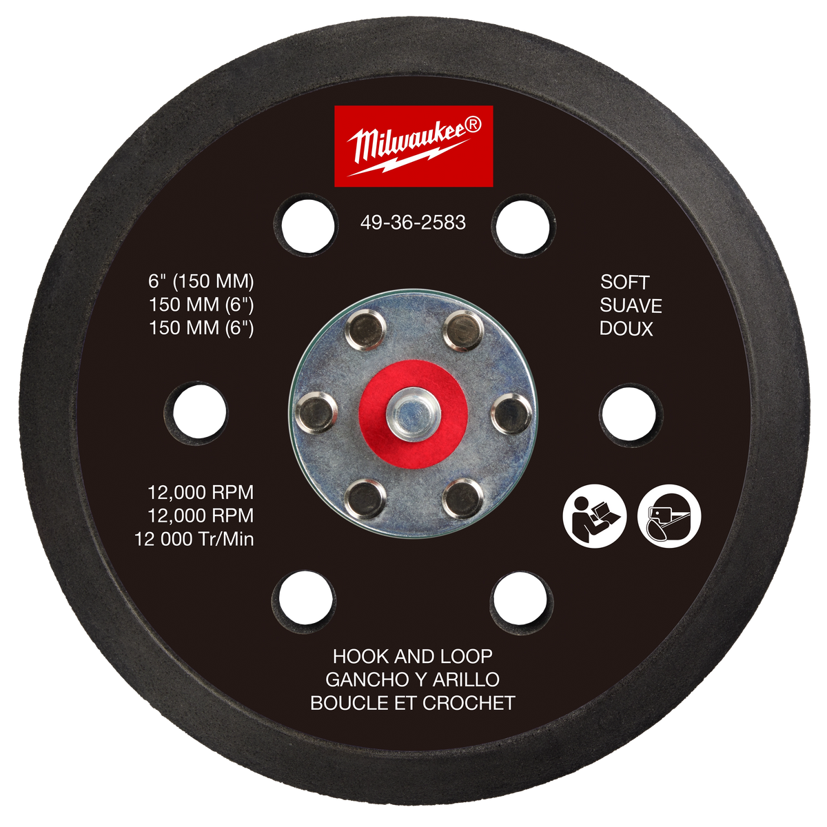 Milwaukee 49-36-2583, 6" Hook and Loop Sander Backing Pad - Soft