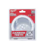 Milwaukee® Hole Dozer™ with Carbide Teeth hole saws provide 50X Life in Extreme Multi-Material cutting applications when compared to bi-metal hole saws while cutting in high RPM. Built utilizing a tough carbide grade combined with a durable 4TPI design, yielding the best tooth durability and longest life in Stainless Steel, Abrasive Materials and Fastener Embedded Wood. Cutting depth is 1.62", allowing clearance to handle cuts in all materials. With a Thermoset Coating to reduce friction and drag during cutting, users benefit from faster cutting and increased cordless efficiency. Slug removal is made easy with the Plug Jack™ T-Slot's. Plug Jack™ enhanced user productivity by providing best access and leverage to remove material slugs. Hole Dozer™ with Carbide Teeth are made in USA.