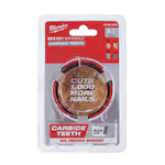 MILWAUKEE® BIG HAWG™ with Carbide Teeth is first-to-market in providing extreme life and durability in both nail-embedded wood and abrasive material applications. Utilizing advanced carbide technology, the new BIG HAWG™ with Carbide Teeth gives users 50x life in demanding applications with the ability to cut 1000+ more nails. 10X larger Carbide Teeth rip through materials 5X faster while deeper slots make for fast and easy plug removal. BIG HAWG™ with Carbide Teeth allows users to cut through the toughest materials including nails, cement board, shingles, plaster and stucco.