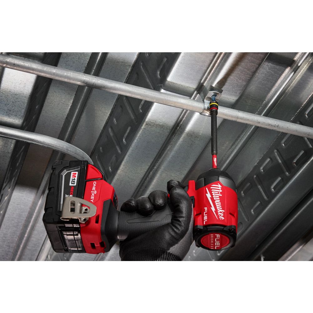 The MILWAUKEE® SHOCKWAVE™ Impact Duty QUIK-CLEAR™ 2-in-1 Magnetic Nut Driver is the most durable, cleanable nut driver. The QUIK-CLEAR™ cleaning mechanism allows for fast and easy removal of metal shavings from the magnet to prevent fastener head stripping. The 2-in-1 nut driver design offers 1/4" and 5/16" nut driver sizes on one shank to allow for maximum versatility when driving hex head screws on the job site. The QUIK-CLEAR™ 2-in-1 Magnetic Nut Drivers feature a powerful magnet that prevents it from loosening over time to enable a consistent, secure grip and unyielding fastener engagement. The optimized SHOCKZONE™ shank absorbs peak torque and prevents breaking. Made from heat-treated CUSTOM ALLOY76™ steel to control hardness and extend bit life. The nut drivers feature two color-coded rings for quick and easy size identification. Designed for use with impact drivers and drill drivers.