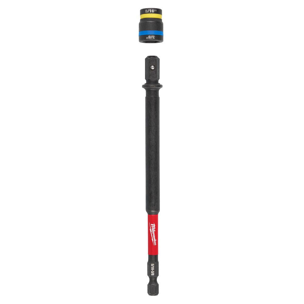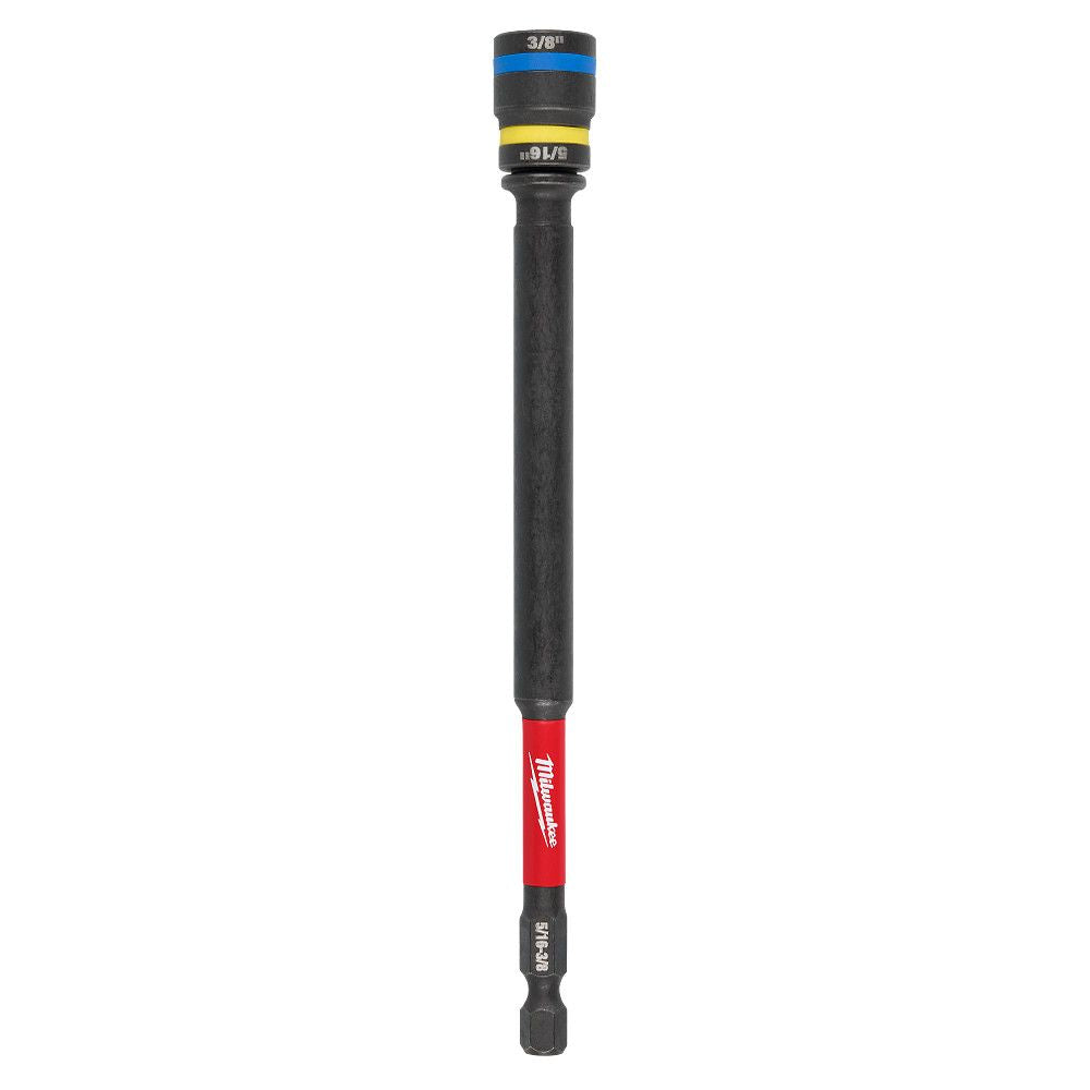 The MILWAUKEE® SHOCKWAVE™ Impact Duty QUIK-CLEAR™ 2-in-1 Magnetic Nut Driver is the most durable, cleanable nut driver. The QUIK-CLEAR™ cleaning mechanism allows for fast and easy removal of metal shavings from the magnet to prevent fastener head stripping. The 2-in-1 nut driver design offers 5/16" and 3/8" nut driver sizes on one shank to allow for maximum versatility when driving hex head screws on the job site. The QUIK-CLEAR™ 2-in-1 Magnetic Nut Drivers feature a powerful magnet that prevents it from loosening over time to enable a consistent, secure grip and unyielding fastener engagement. The optimized SHOCKZONE™ shank absorbs peak torque and prevents breaking. Made from heat-treated CUSTOM ALLOY76™ steel to control hardness and extend bit life. The nut drivers feature two color-coded rings for quick and easy size identification. Designed for use with impact drivers and drill drivers.