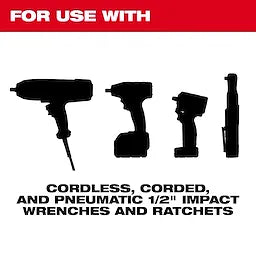 - Optimized for use with 1/2" drive impact wrenches, drivers, ratchets, and adapters