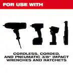 - Optimized for use with 3/8" drive impact wrenches, drivers, ratchets, and adapters