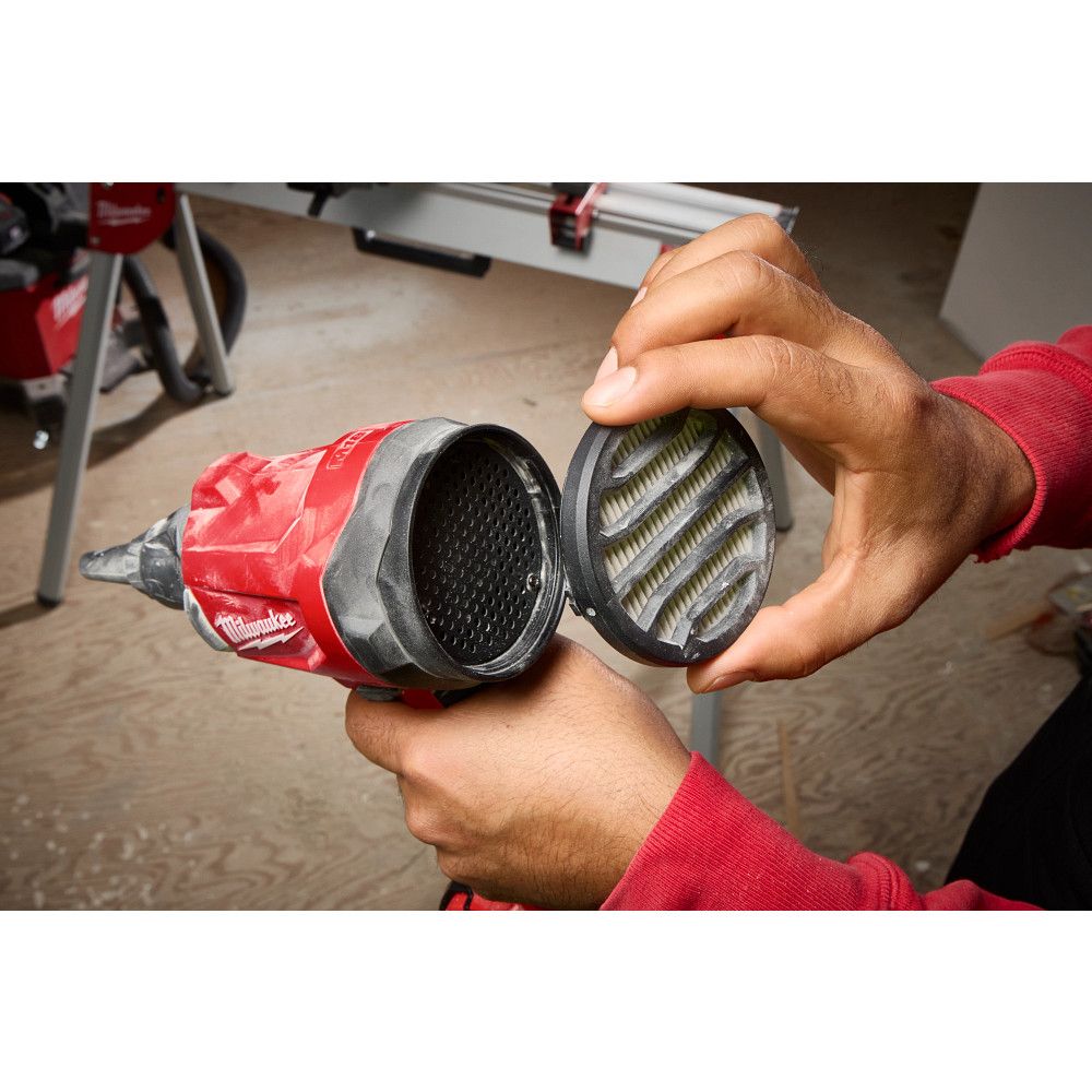 Our Inlet Filter (49-90-1949) is compatible with the M18™ Brushless Precision Blower (0887). The filter is easy to install with a quarter-turn lock. This filter is dry-cleanable and reusable after cleaning.