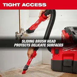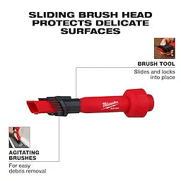 The AIR-TIP™ 2-in-1 Utility Brush Tool can clean multiple surfaces with easy an access sliding brush. The sliding brush can be easily deployed with a click of a button to protect delicate surfaces or agitate debris when needed. Sliding back the brush head allows for additional cleaning versatility when you need more suction or no bristles. The MILWAUKEE® AIR-TIP™ 2-in-1 Utility Brush Tool is compatible with other wet/dry vacuum brands with 1-1/4", 1-7/8", 2-1/2" diameters, and is part of the AIR-TIP™ family of Trade Focused Vacuum Accessories.