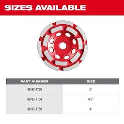 Milwaukee 49-93-7750, 4"DOUBLE ROW CUP WHEEL,5/8-11