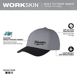 - Milwaukee WORKSKIN fitted hats keep you cool on the jobsite for all day comfort