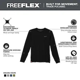 Part of the MILWAUKEE® FREEFLEX™ Collection, our Long Sleeve Hybrid Work Tee is BUILT FOR MOVEMENT. Our Long Sleeve Hybrid Work Tee is a lightweight and breathable solution that allows you to STAY COMFORTABLE and KEEP COOL. This work t-shirt is specifically created for mobility and durability with its drop shoulder design to reduce wear on the seams. The MILWAUKEE® Hybrid Work Tee Shirts are built to protect against the elements, offering UPF 50 protection for those warm days on the jobsite and moisture-wicking fabric so you can stay dry while working. Choose from a variety of colors, including black, blue, gray, and green, available in sizes small to 3XL.