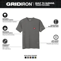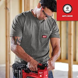 Part of the MILWAUKEE® GRIDIRON™ Collection, our Short Sleeve Pocket Tee is BUILT TO SURVIVE. Our Pocket Tees are built from durable, reliable fabric for ALL DAY PROTECTION to OUTLAST THE JOB. This short sleeve t-shirt is engineered for broken-in comfort on day one and continues to get better over time. Designed with a relaxed fit for plenty of room to move. Our moisture wicking and anti-odor technologies make the Heavy Duty Pocket T-Shirt a go-to any time of year.
