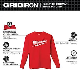Milwaukee 608R-M, BIG LOGO WORK TEE LS - RED M
