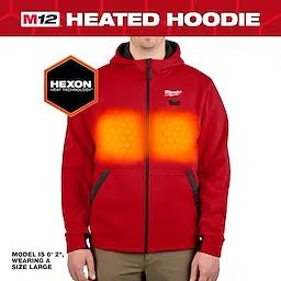 Our M12™ Heated Hoodie delivers HEAT BUILT FOR COMPLETE COMFORT. Powered by Milwaukee’s NEW HEXON HEAT TECHNOLOGY™, this hoodie STAYS WARMER FOR LONGER in all temperatures, delivers the FASTEST HEAT UP TIME and offers the GREATEST HEAT COVERAGE throughout the garment. Whether facing freezing outdoor temperatures or navigating spaces with minimal heat indoors, this hoodie adapts to its environment to deliver effective heat in any condition. By integrating HEXON HEAT TECHNOLOGY™ and an improved fabric design, optimal comfort and mobility are achieved. With ground-up developed cotton/polyester fleece fabric, this MILWAUKEE® hoodie provides warmth and a full range of motion whether worn as a mid-layer or exterior layer. The hidden battery pass-thru pocket allows for front or back battery placement, increasing versatility depending on the situation. Our Milwaukee® Heated Gear is developed in collaboration with feedback from users across the trades through continuous jobsite research.