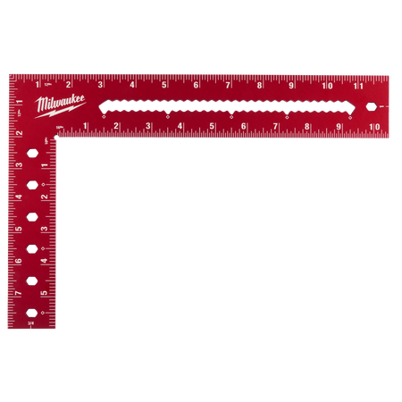 Our 8" x 12" Framing Square is stronger than steel and is the most versatile framing square. The square has a thicker aluminum frame that withstands harsh jobsite conditions. With 1/8" scribe notches from 1"-6", this square makes ripping lumber easier and more accurate. The square also has high visibility, laser laser-etched markings so it's easier to read. All MILWAUKEE® squares are backed by a limited lifetime warranty.