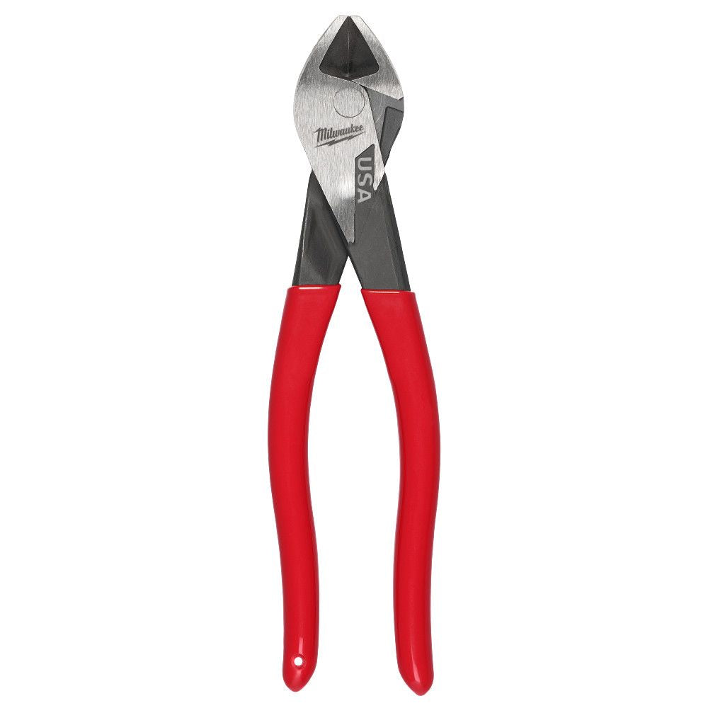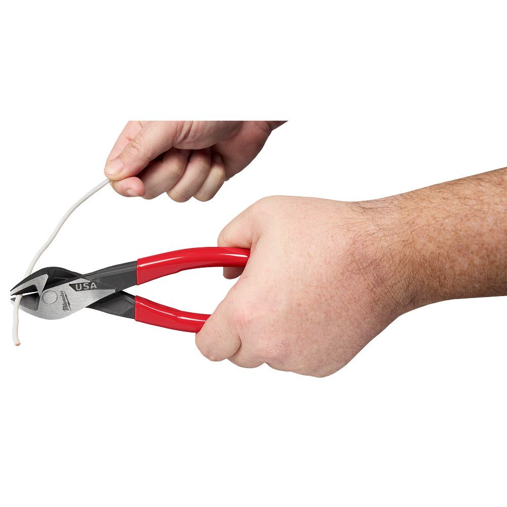 Our Diagonal Cutting Pliers (USA) deliver the easiest cuts and a lasting edge for the professional user. Our pliers are designed with an optimized pivot point to provide the best leverage for tough cuts through materials like wires, screws, and other standard hardware. Our diagonal cutting pliers deliver the confidence of an extended cut life with a laser-hardened edge. Our diagonal cutting pliers are engineered to provide the smoothest open and close experience from the start, with no break-in period required. The pliers are tether-ready and offered in both dipped grip with a split-ring hole and comfort grip with a lanyard hole. Our Diagonal Cutting Pliers are available in sizes of 6-inch, 7-inch, and 8-inch. The 8" Diagonal Pliers are also available as an Angled Head, aiding access, hand clearance, and prying. Our Milwaukee Diagonal Cutting Pliers are made in the USA with best-in-class manufacturing technology and USA-sourced materials, including durable, press-forged steel, and are backed by a complete Lifetime Guarantee.