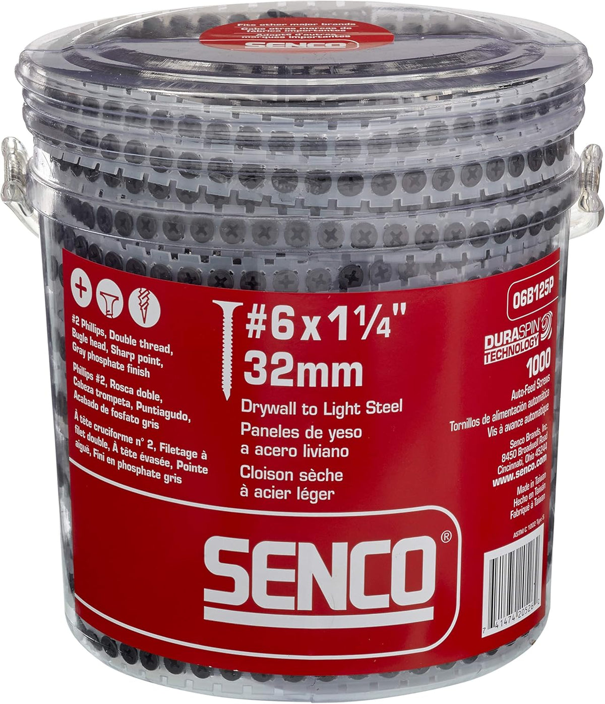 Senco 06B125P, Collated Drywall Screw Fine Thread Drywall to Steel #6 X 1-1/4"(1M/Box)