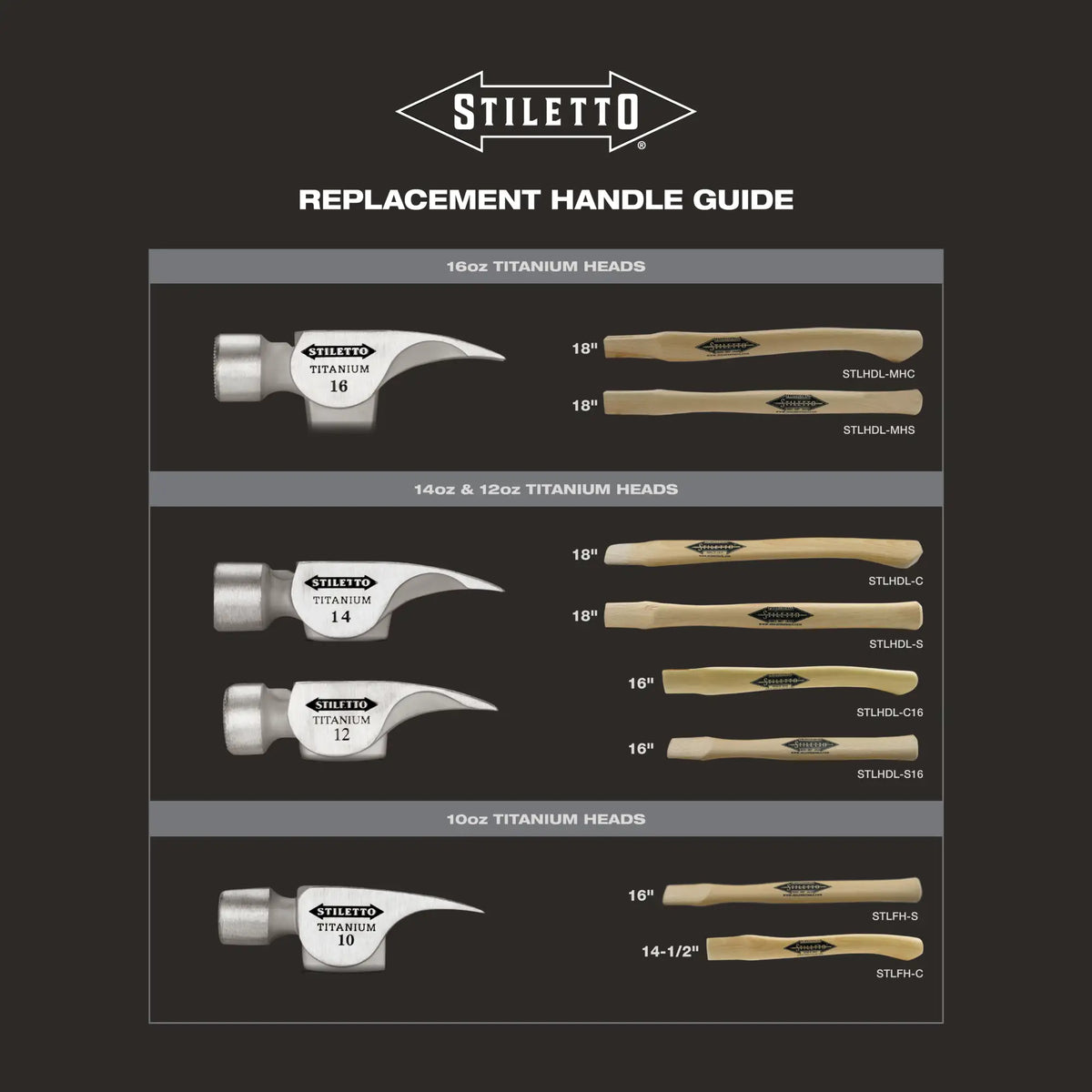 Stiletto STLHDL-C16, 16” Curve Hickory Replacement Handle for 12/14oz