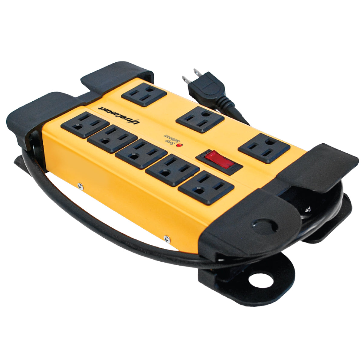 The Ultracontact Power Bar by Toolway is perfect for DIYers and contractors alike. It can handle up to 1050 joules; features a lighted on/off switch with built-in circuit breaker; 8 outlets; steel housing and a built-in cord storage design."