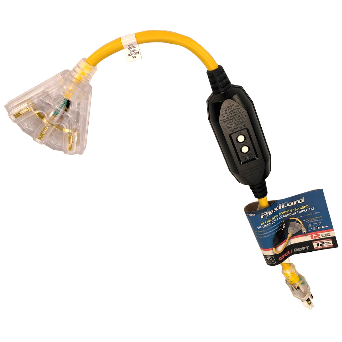 FlexiCord in-line GFCI and triple tap by Toolway helps provide protection for all your grounded appliances and tools. It is manufactured with a durable PVC housing which resists moisture; chemicals and direct sunlight. Perfect for all job sites. the waterproof mechanism allows for both indoor and outdoor applications; includes reset and test buttons and LED power indicator ends."
