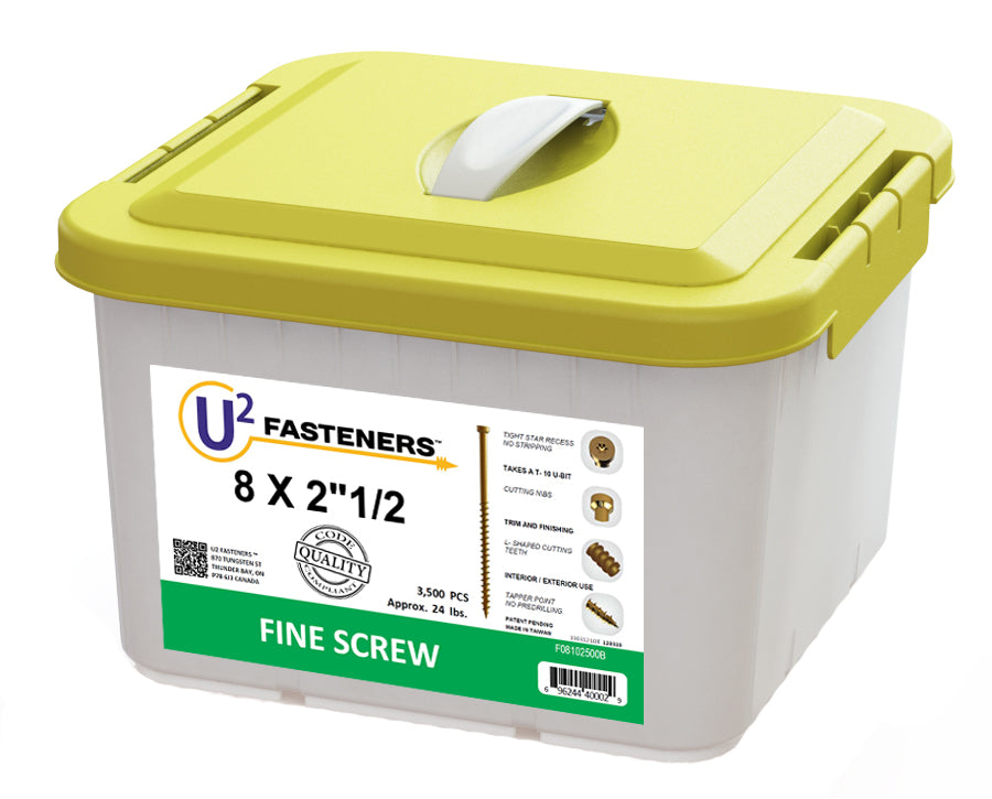 The Fine Screw™ has a very small finishing head for fine woodworking. This self-tapping fastener can be used for siding or any project using delicate woods like crown molding, baseboards, railings, PVC, and more. Available in U-Gold or White coating.