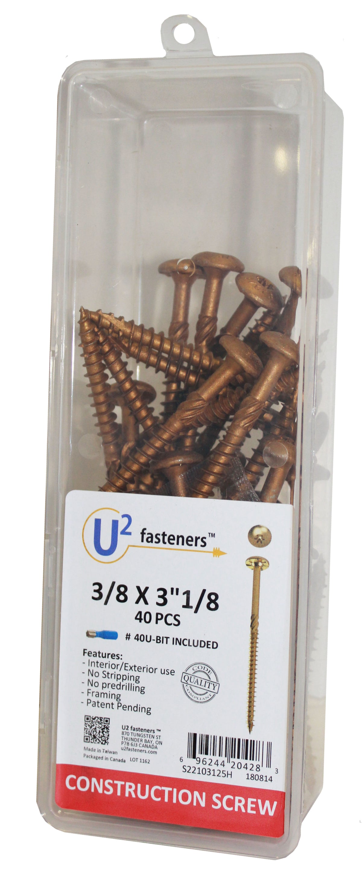 U2 Fasteners S22103125H, Construction Screw 3/8 X 3-1/8" (40/pkg)