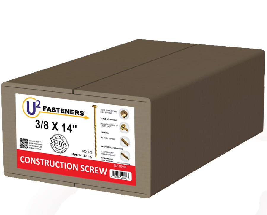 U2 Fasteners S22114000B, Construction Screw 3/8 X 14" (300/pkg)