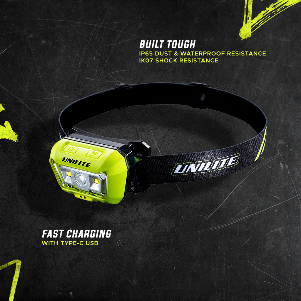 475 Lumens provides a powerful beam with fully hands free operation thanks to built in sensor mode. The HL-8R is also to be used as a long distance spot beam and wide angle flood thanks to Side SMD LED’s. Built tough, the HL-8R features IP65 dust and waterproof resistance as well as IK07 shock resistance and is easily charged via Type-C USB. A full adjustable non-slip silicone lined headband is also included as well as Type C charging cable.