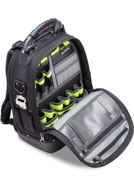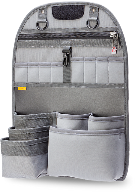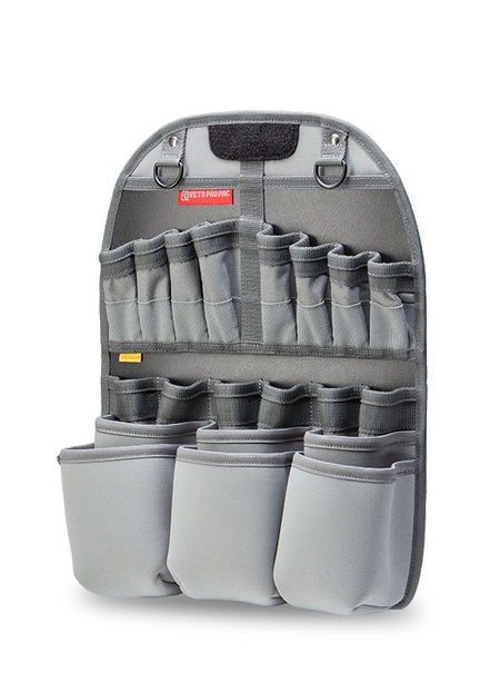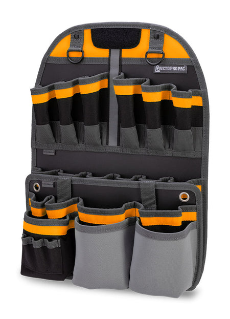 The Tech Pac Blackout is a blacked-out tool backpack for tool storage based on our Tech Pac but with Veto Pro Pac’s V-Swap™ system that COMES WITH FRONT AND BACK removable TOOL and METER pocket panels which are also exchangeable. You can purchase additional Meter, Tool and other panels as desired, including a Laptop Panel that can turn the bag into a tool bag/laptop bag, and the Laptop Panel can go in the front or the back, flat rubber panel for Bulk Storage, a Modular panel, Utility Panel, and Folio panel. Includes V-Swap™ Tool Panel and Meter Panels, V-Swap™ Laptop, Folio, Utility, Modular, and Bulk Storage Panels Sold Separately.