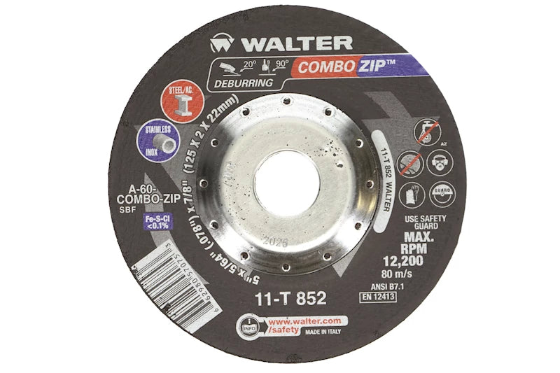 Safely cut and deburr with just one wheel. COMBO ZIP™ is the perfect fit when operators don't want the hassle of having to change out wheels to deburr, notch or chamfer immediately after cutting. Save time and improve worker safety with COMBO ZIP™. Metal hub cladding prevents contact with the workpiece and therefore improves safety. Also provides extra strength and control. The triple reinforcement on the COMBO ZIP™ provides 3-layers of reinforcement and metal cladding on the cut-off wheel's hub that provides maximum safety. This feature allows the cut-off wheel to bear the force of lateral pressure and allow users to light grind/deburr in a safe manner.