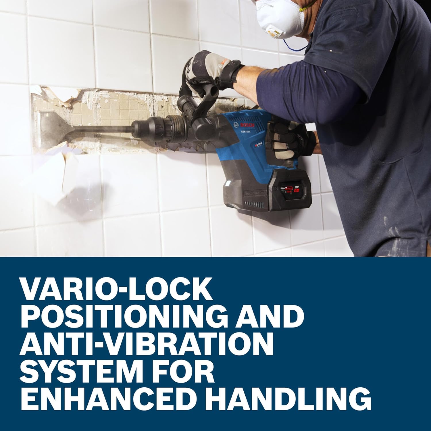 The Bosch GSH18V-5 SDS-max Demolition Hammer brings PROFACTOR™ power and maneuverability to a wide range of chiseling applications. The hammer’s efficient brushless motor offers outstanding power-to-weight ratio, delivering 6.3 Ft.-Lbs. of impact energy (EPTA) while weighing in at only 11.7 Lbs. (tool only). The compact, lightweight design allows the tool to be used in downward, horizontal and horizontal over-shoulder applications for maximum versatility, while vibration control helps further enhance comfort. Fine-tune chiseling performance with soft start, controlled bpm and achieve greater precision with the Vario-Lock that allows the chisel to be rotated and locked for optimal working angles. The lock-on button keeps the tool running when activated for use in longer applications. Fully compatible with the Bosch PRO+GUARD™ Dust Solution System to help move toward OSHA silica table 1 dust compliance.