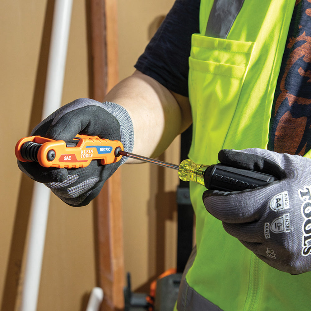 Klein Tools 70590, Compact Folding Hex Key Set, 12-Key, SAE, Metric Sizes