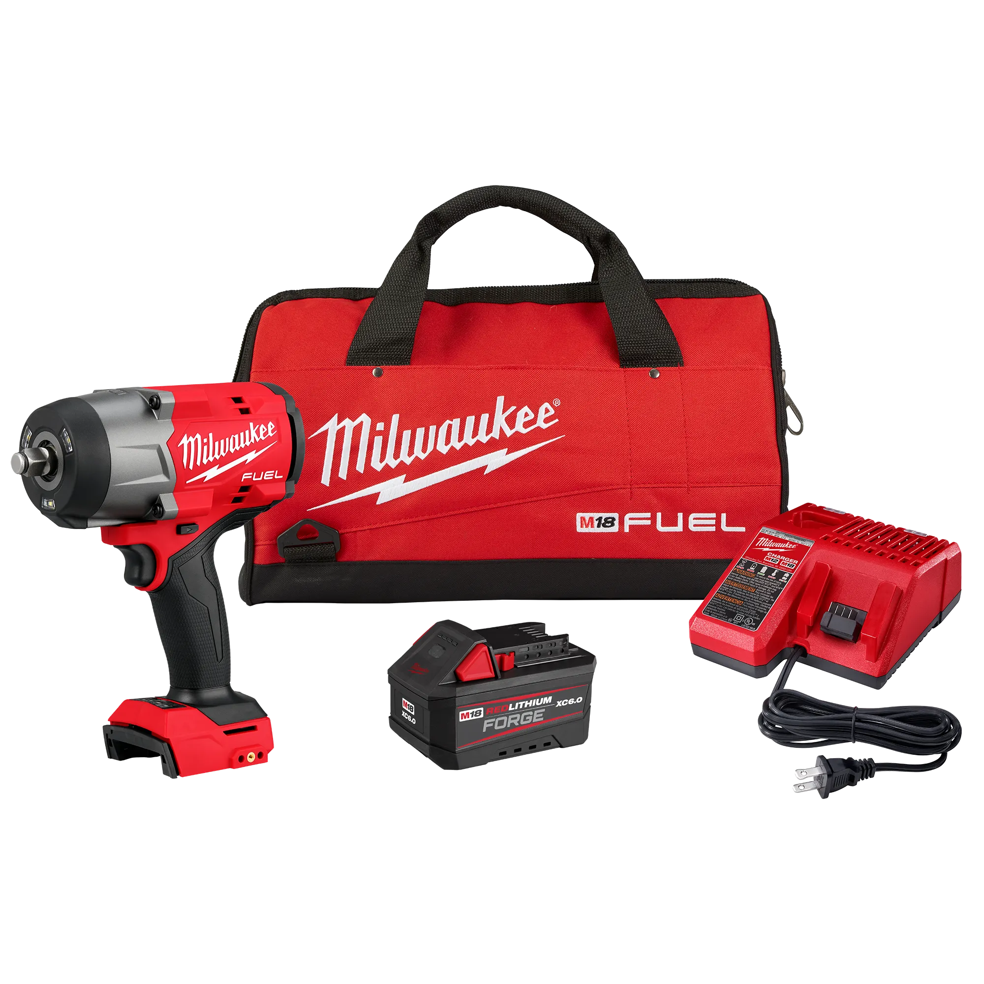 Our M18 FUEL™ ½” High Torque Impact Wrench w/ Friction Ring is the most power-dense impact wrench in its class, provides greater access in tight spaces, and maximizes productivity through faster removal speeds. The POWERSTATE™ Brushless Motor delivers up to 1,200 ft-lbs of Fastening Torque and 1,600 ft-lbs of Nut-Busting Torque when paired with our M18™ REDLITHIUM™ FORGE™ Batteries, while the compact size at 7.6" in length gives users greater access in tight spaces. The M18 FUEL™ ½” High Torque Impact Wrench w/ Friction Ring maximizes productivity on the jobsite and in the shop by removing stubborn bolts and fasteners faster than cordless competitors. Our patented battery isolation system provides a secure battery connection and controls vibration transmitted to the pack. Tri-LEDs surround the anvil to deliver brighter light with fewer shadows. 4-Mode DRIVE CONTROL™ offers greater precision with a range of pre-set RPM and IPM levels, selectable from a single button on the tool. By selecting Mode 4, AUTO SHUT-OFF™ control applies no more than 50 ft-lbs of torque for hand-tight fastening applications to prevent overtightening. Mode 4 also features Bolt Removal Control that delivers our users full torque output, then decreases RPMs once the bolt is loosened to prevent fastener drops. The included M18™ REDLITHIUM™ FORGE™ XC6.0 Battery Pack delivers you HIGH OUTPUT™ HD12.0 power in a smaller size, 15min supercharge to 80%, and longest life vs. REDLITHIUM™ batteries.