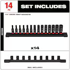 The Milwaukee 49-66-7003 14PC SHOCKWAVE Impact Duty 1/4″Drive Metric Deep Length 6-Point Socket Set includes: