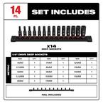 Milwaukee 49-66-7003, SHOCKWAVE 1/4" Drive Impact Duty Metric Deep 6 Point Socket Set - 14 Piece